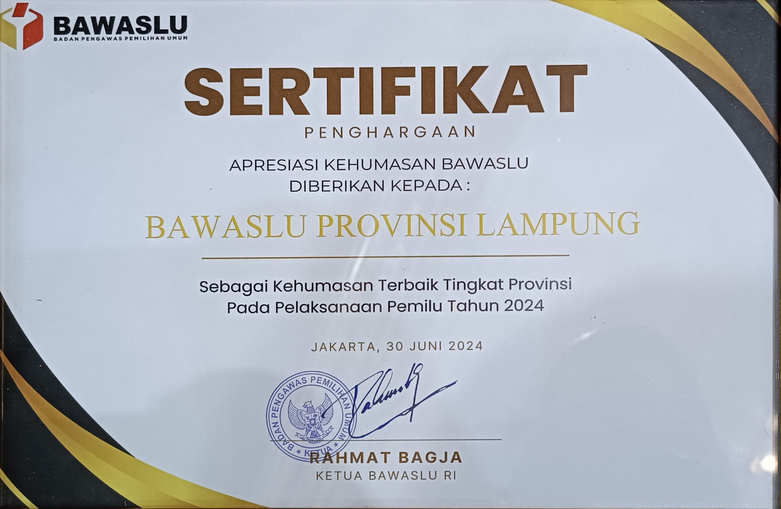 Di informasikan Bawaslu Provinsi Lampung juga pernah Sabet Tiga Penghargaan dari Bawaslu Republik Indonesia, Tiga penghargaan tersebut diantaranya Terbaik 1 Kategori Media Sosial Terproduktif, Terbaik 1 Kategori Publikasi Vidio Terbaik, Terbaik 2 Kategori Karya Vidio Terbaik pada kegiatan Rapat Koordinasi Nasional dan Anugerah Kehumasan Bawaslu Tahun 2023 dengan tema Membangun Kepercayaan Publik Melalui Kehumasan yang Berkualitas dalam Pengawasan Pemilu 2024, Rabu (22/11).