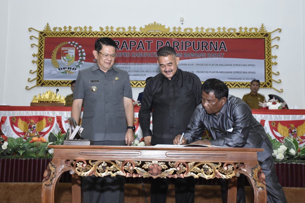 Suluh.info – Penjabat (Pj) Bupati Tulang Bawang Barat (Tubaba) Drs. M.Firsada, bersama Pimpinan DPRD Tubaba sepakat menandatangani Nota Kesepakatan Kebijakan Umum Anggaran (KUA) dan Prioritas Plafon Anggaran Sementara (PPAS) Anggaran Pendapatan dan Belanja Daerah (APBD) Perubahan Tahun Anggaran (TA) 2024.