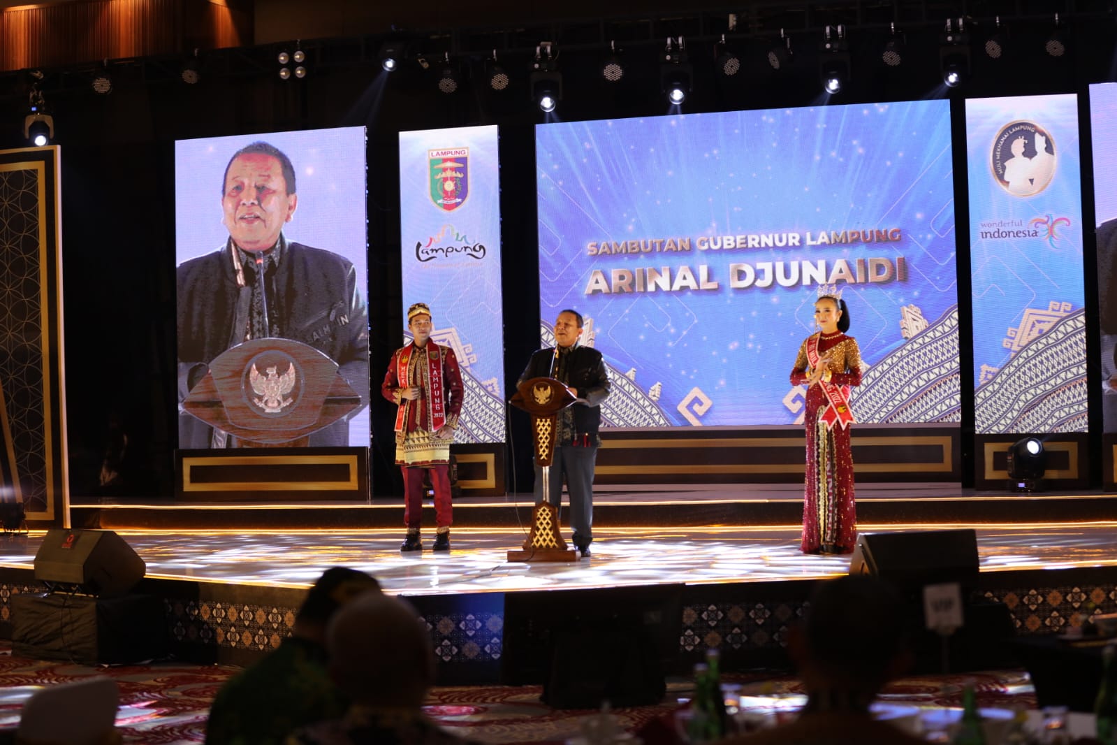 Hal tersebut disampaikan oleh Gubernur Lampung Arinal Djunaidi dalam Malam Grand Final Muli Mekhanai Lampung 2023, di Ballroom Hotel Radisson, Kamis (21/09/2023) malam.