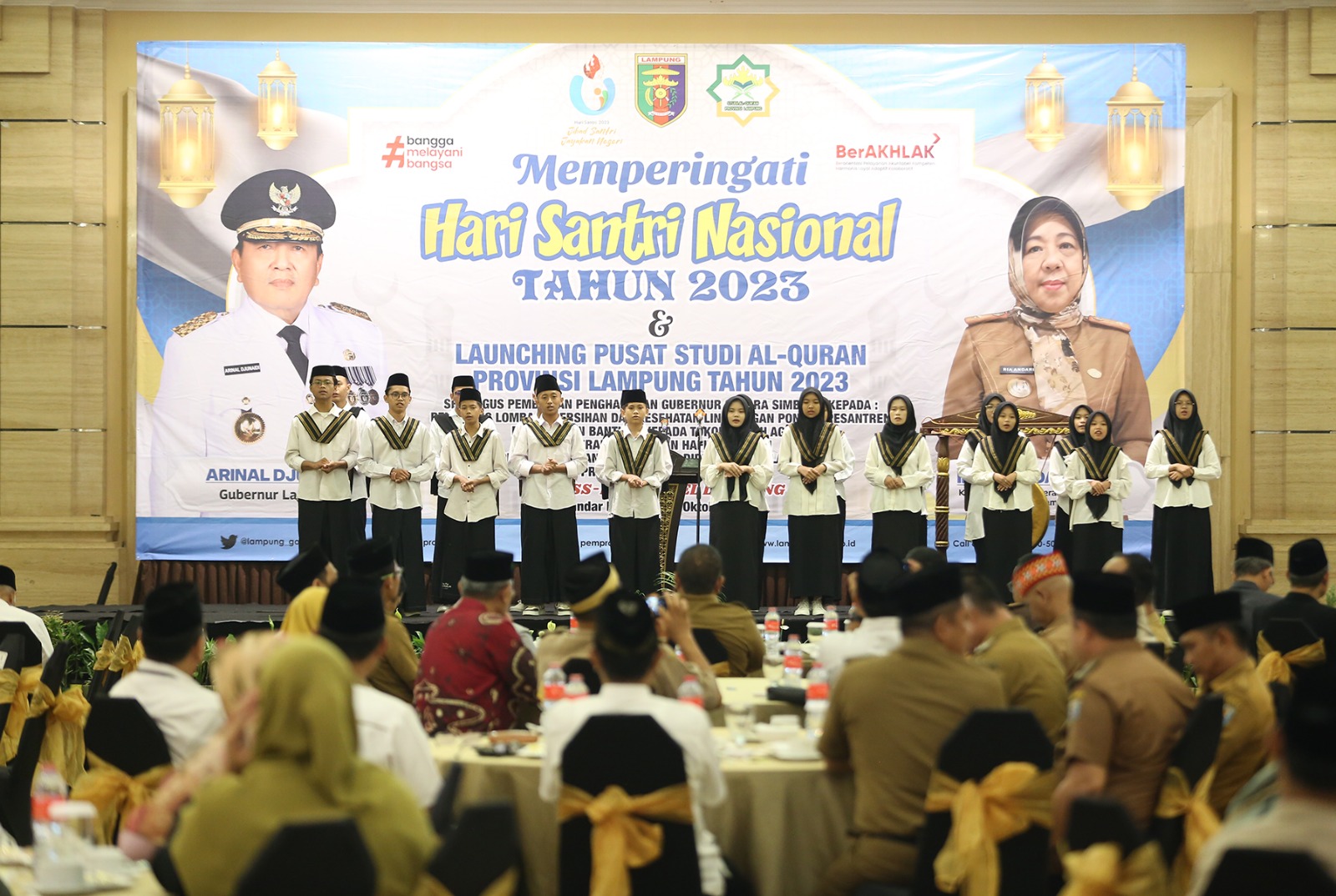 BANDARLAMPUNG —-Gubernur Lampung Arinal Djunaidi meluncurkan Pusat Studi Al-Quran Provinsi Lampung bertepatan dengan perayaan Hari Santri Nasional 2023 di Ballroom Swiss-bell Hotel, Bandar Lampung, Senin (23/10/2023).