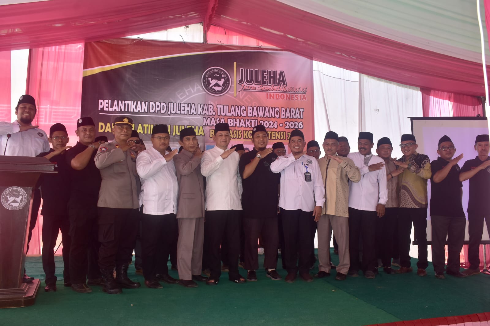 Suluh.info – Penjabat Bupati Tulang Bawang Barat Drs. M. Firsada, M.Si., menghadiri Pelantikan DPD Juru Sembelih Halal (JULEHA) Tubaba dan Pelatihan JULEHA Berbasis Kompetensi 2024