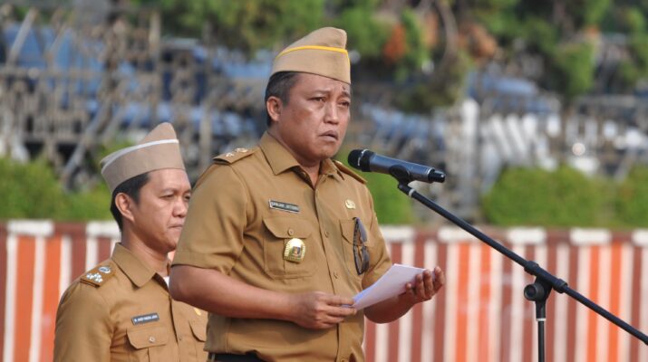 Penjabat Gubernur Lampung, Samsudin, diwakili oleh Staf Ahli Gubernur Bidang Pemerintahan, Hukum, dan Politik Provinsi Lampung, Ganjar Jationo menjadi Pembina Apel Mingguan dilingkungan Sekretariat Daerah Pemerintah Provinsi Lampung, Senin (7/10/2024).