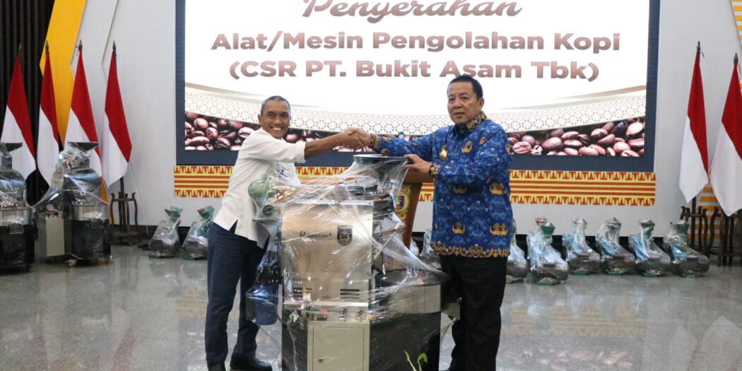 Dalam kesempatan tersebut, PT Bukit Asam menyerahkan 30 set Alat/Mesin Pengolahan Kopi yang terdiri dari Grinder dan Mesin Sangrai. (Dinas Kominfotik Provinsi Lampung)