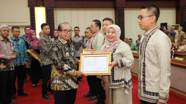 Pj. Gubernur Lampung Samsudin menutup Pelatihan Kepemimpinan Nasional (PKN) Tingkat II Angkatan XIX Tahun 2024 yang diikuti 58 Pejabat Pimpinan Tinggi Pratama dari Pemerintah Provinsi dan 11 Kabupaten/Kota Provinsi Lampung, di Gedung Pusiban, Komplek Dinas Kantor Gubernur, Bandarlampung, Jum’at (25/10/2024).