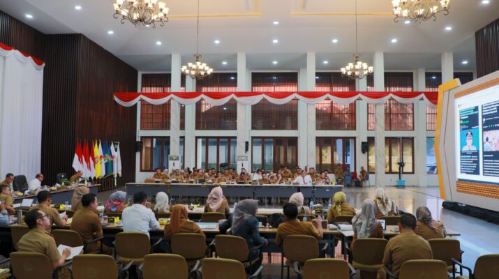 Pj. Gubernur Lampung Samsudin memimpin Rapat Persiapan Asistensi Evaluasi Kinerja Penjabat (Pj.) Gubernur Semester Pertama, di Mahan Agung, Bandar Lampung, Senin (2/9/2024).