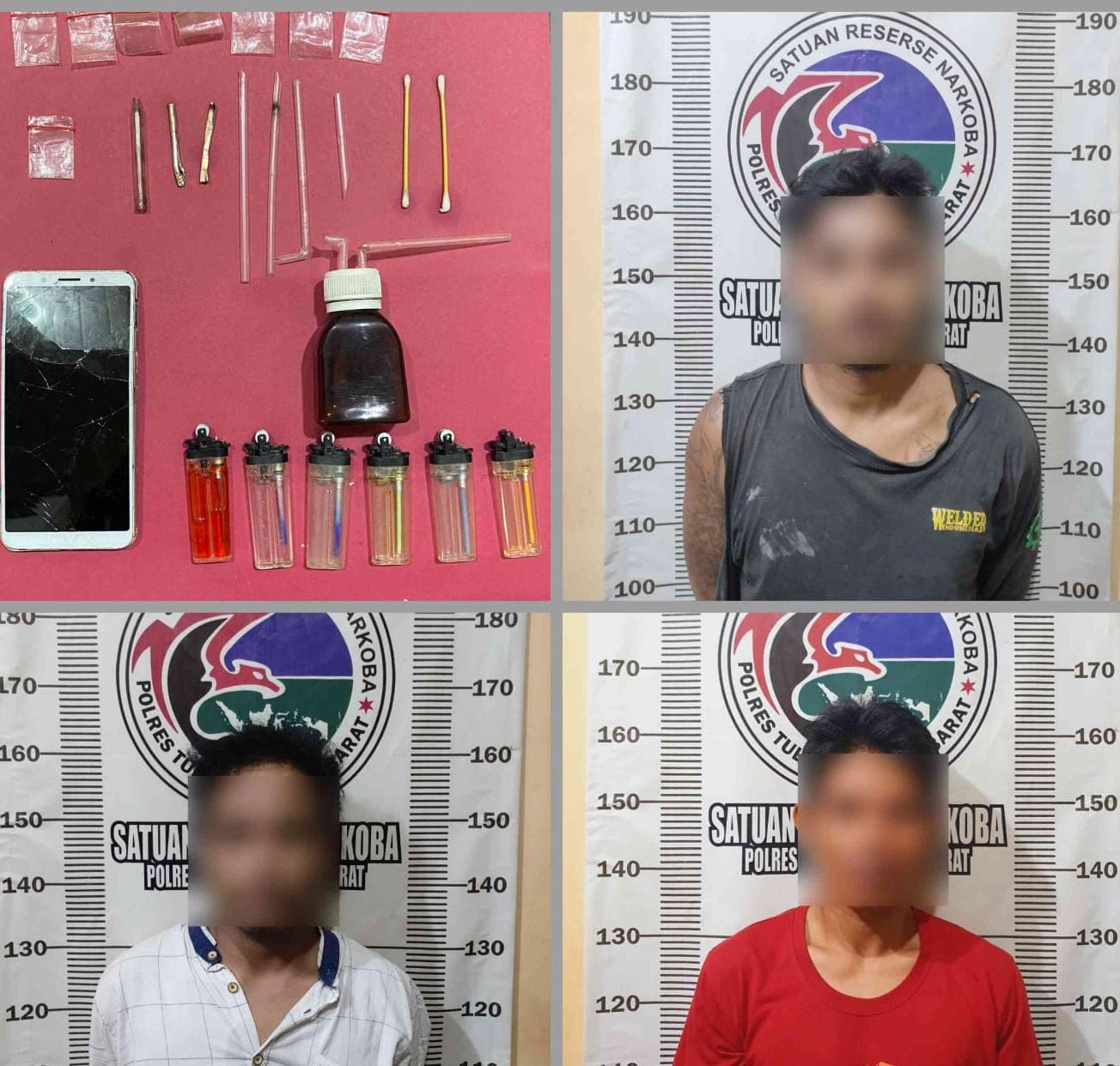 Adapun Barang Bukti yang diamankan dari Pelaku Target Operasi A als P yakni 1 (satu) bungkus plastik klip bening ukuran kecil yang didalamnya berisi kristal-kristal putih diduga narkotika jenis Shabu dengan berat bruto 0,16 gram, 7 (tujuh) buah plastik klip bening kosong ukuran kecil diduga bekas pembungkus shabu, 1 (satu) buah kaca Pirek yang masih terdapat residu (sisa pembakaran) diduga narkotika jenis Shabu, 1 (satu) buah alat hisap Shabu (Bong) yang terbuat dari botol plastik warna cokelat yang pada bagian tutupnya terpasang 2 (dua) buah selang pipet bengkok, 3 (satu) buah sendok shabu yang terbuat dari selang pipet, 2 (dua) buah sumbu pembakar, 1 (satu) buah selang pipet bengkok, 2 (dua) buah Cotton Bud, 6 (enam) buah korek api gas tanpa kepala, 1 (satu) unit Handphone android merk OPPO A53 warna gold dalam kondisi pecah.