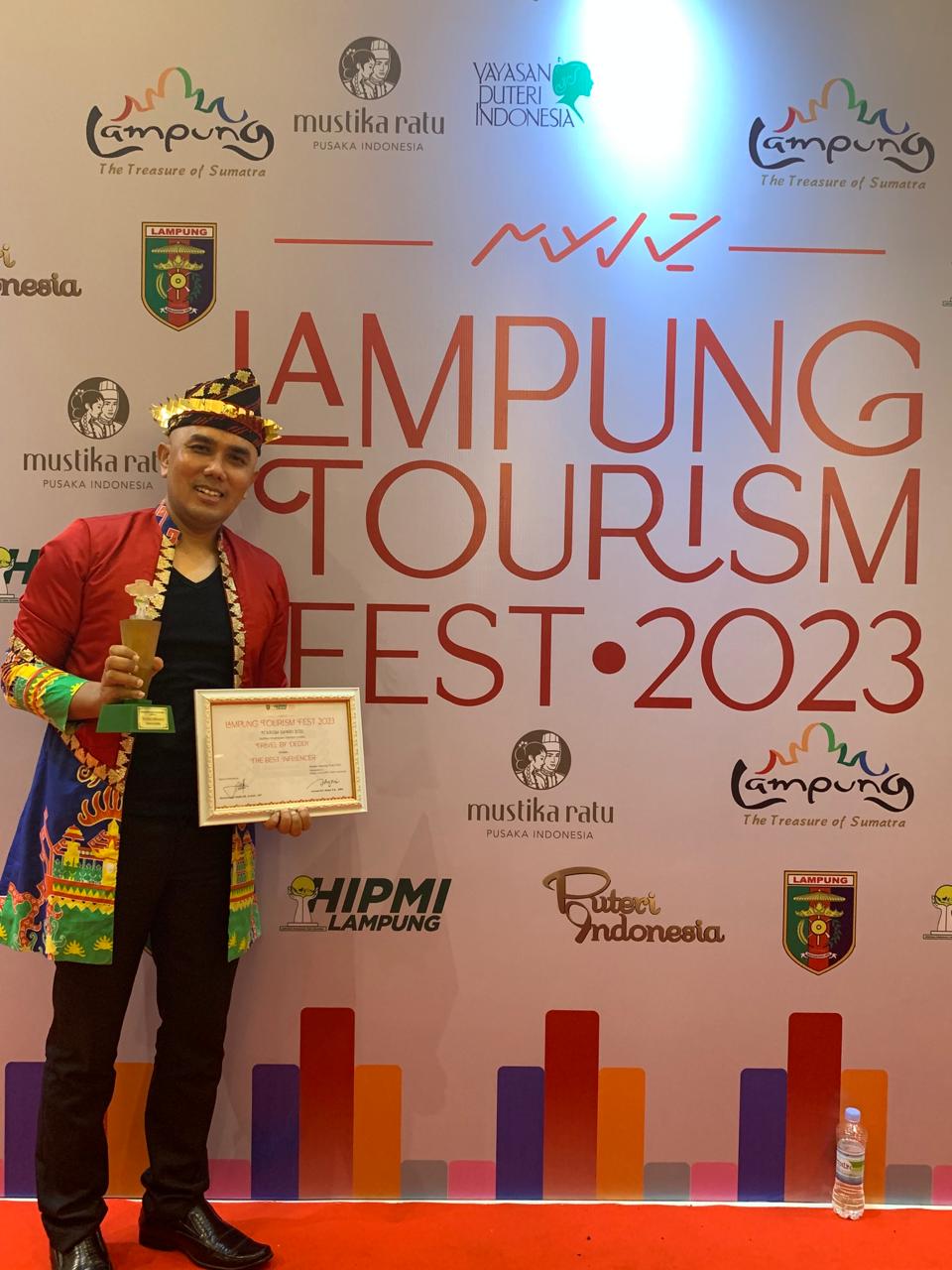 Berawal dari hobinya yang sering traveling, siapa sangka, sekarang Deddy Sulaimawan menikmati hasil perjuangannya dengan mendapatkan penghargaan sebagai Best Influencer 2023 dalam event Lampung Tourism Award 2023.